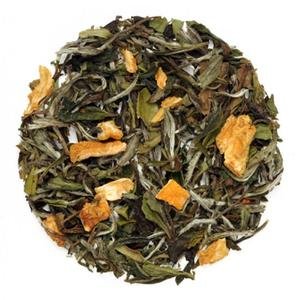 - Organic Bai Mu Dan white tea, orange peels, marigolds with orange tangerine natural essence